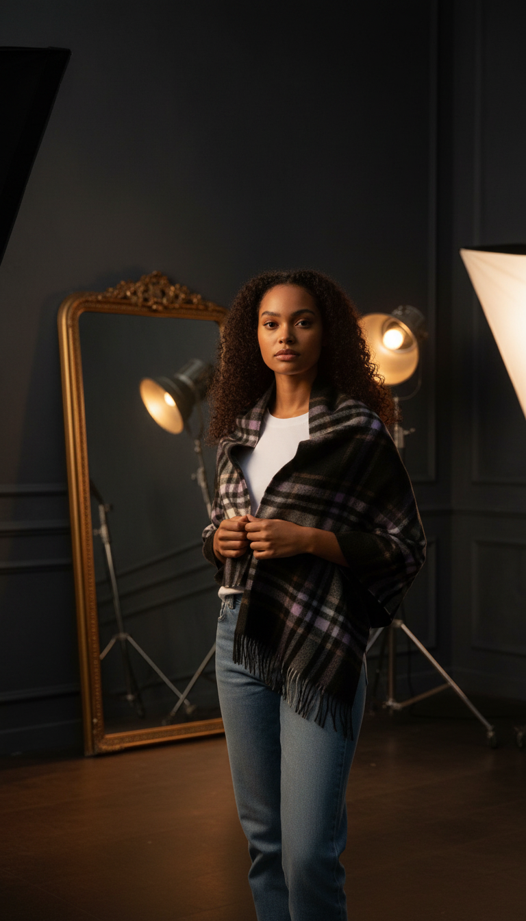 Crafted from sumptuous premium 100% lambswool, this elegant stole showcases a refined charcoal, lilac and blue plaid pattern. The generous drape and luxurious fabric make it an effortless way to elevate any ensemble, whether layered over a dress or worn as a sophisticated wrap. Perfect for adding warmth and understated elegance to your wardrobe.
